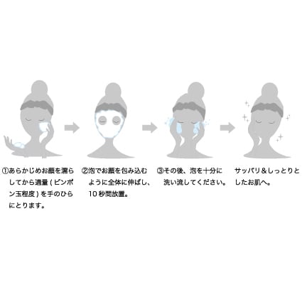 ②泡でお顔を包み込むように全体に伸ばし、10秒程放置